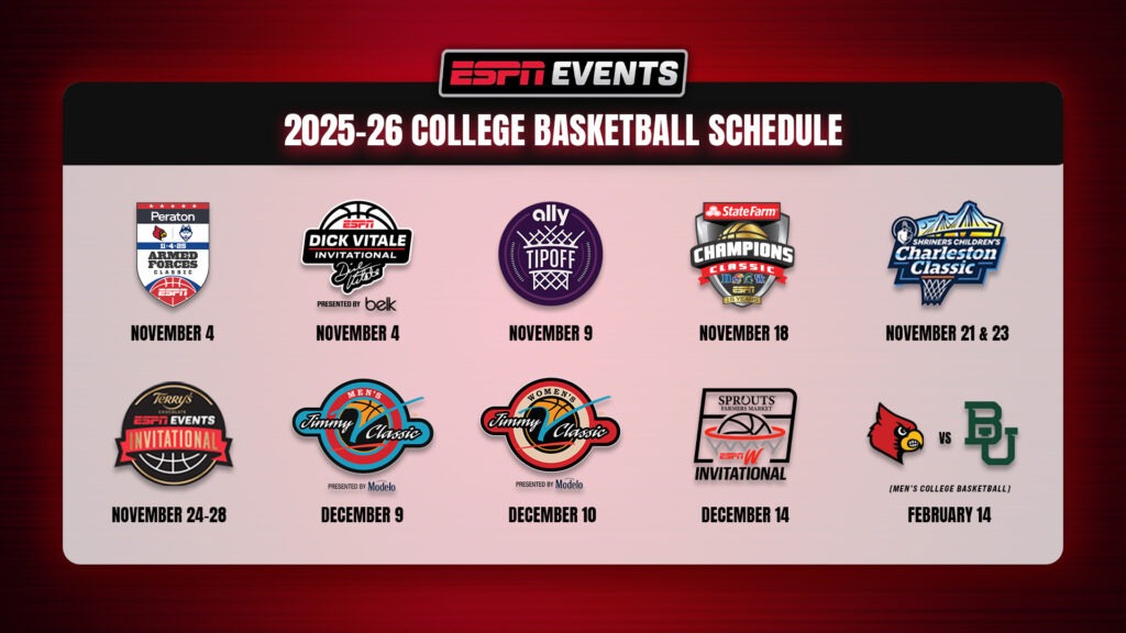 ESPN Events has announced the matchups and schedules for 10 of its owned-and-operated and partnered events for the 2025-26 men’s and women’s college basketball seasons. Combining for more than 80 hours of programming across ESPN platforms, ESPN Events will showcase 41 teams, including eight teams in the preseason AP Top 10 men’s and women’s rankings for the 2025-26 season.